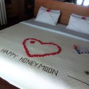 You know when you see pictures but when you see the subject in real life it can be a let down like some hotels have amazing photos on their site but in fact the rooms are crappy? Well this was the one time I found the photos actually didn’t do the room justice. It was MASSIVE I felt like some kind of movie star and of course got teary. Matt just stood there with his mouth wide open in awe. The lovely lady who showed us around kept giggling at us. They’d even laid out happy honeymoon and a heart on the bed in flowers.